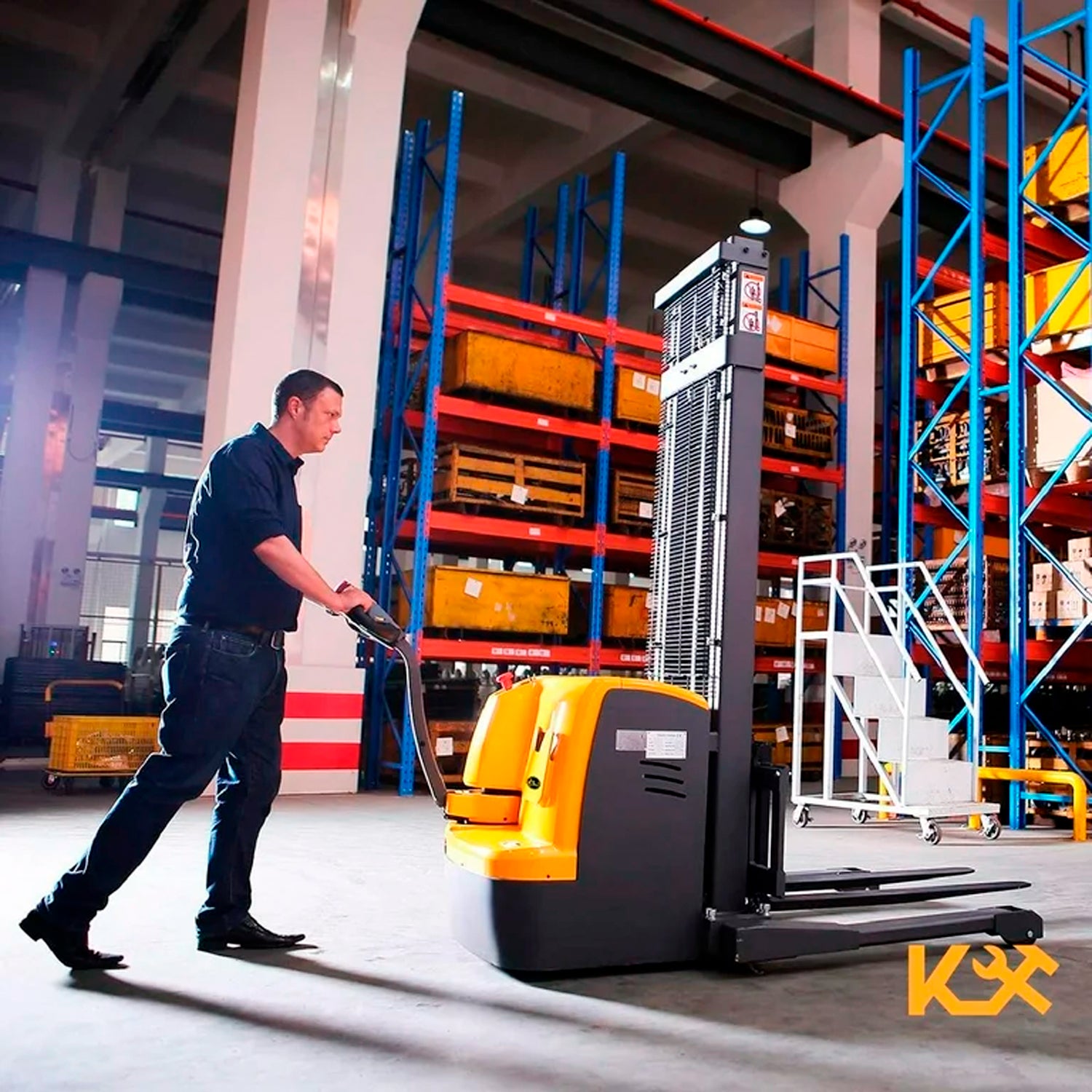 Mueve pallets y pesos medianos dentro de instalaciones industriales.