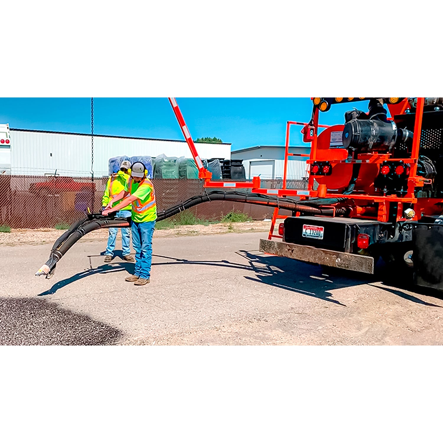 La boquilla Vent-Flo especialmente diseñada recubre adecuadamente el agregado con la cantidad correcta de emulsión, independientemente del tamaño del agregado. La mezcla se aplica en el bache en ángulo, lo que permite una distribución máxima y la mayor seguridad para el operador. Los oricios de ventilación reducen la velocidad de la corriente de aire para minimizar el sobre roseado del agregado y maximizar la colocación en la reparación.