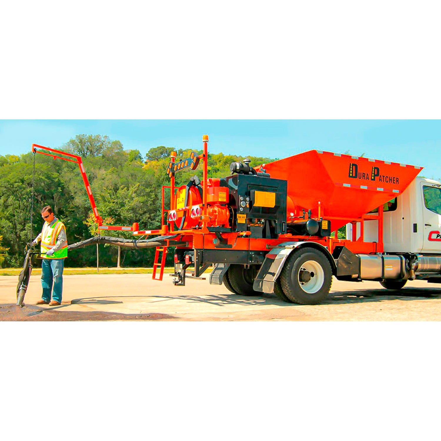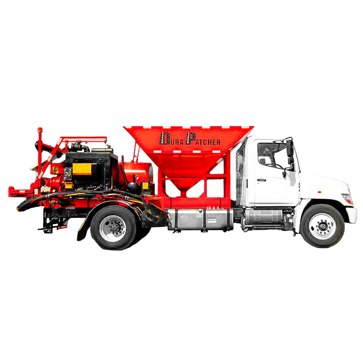 Todas las mismas características que la bacheadora en remolque, pero con la conveniencia de estar montado en el camión. Especialmente útil en calles residenciales angostas o áreas con radios de giro estrechos. La tolva de agregados de 4.6m³ mantiene a los operadores trabajando con menos viajes a reabastecer. Con el diseño universal se monta fácilmente en la mayoría de los chasis de camiones.