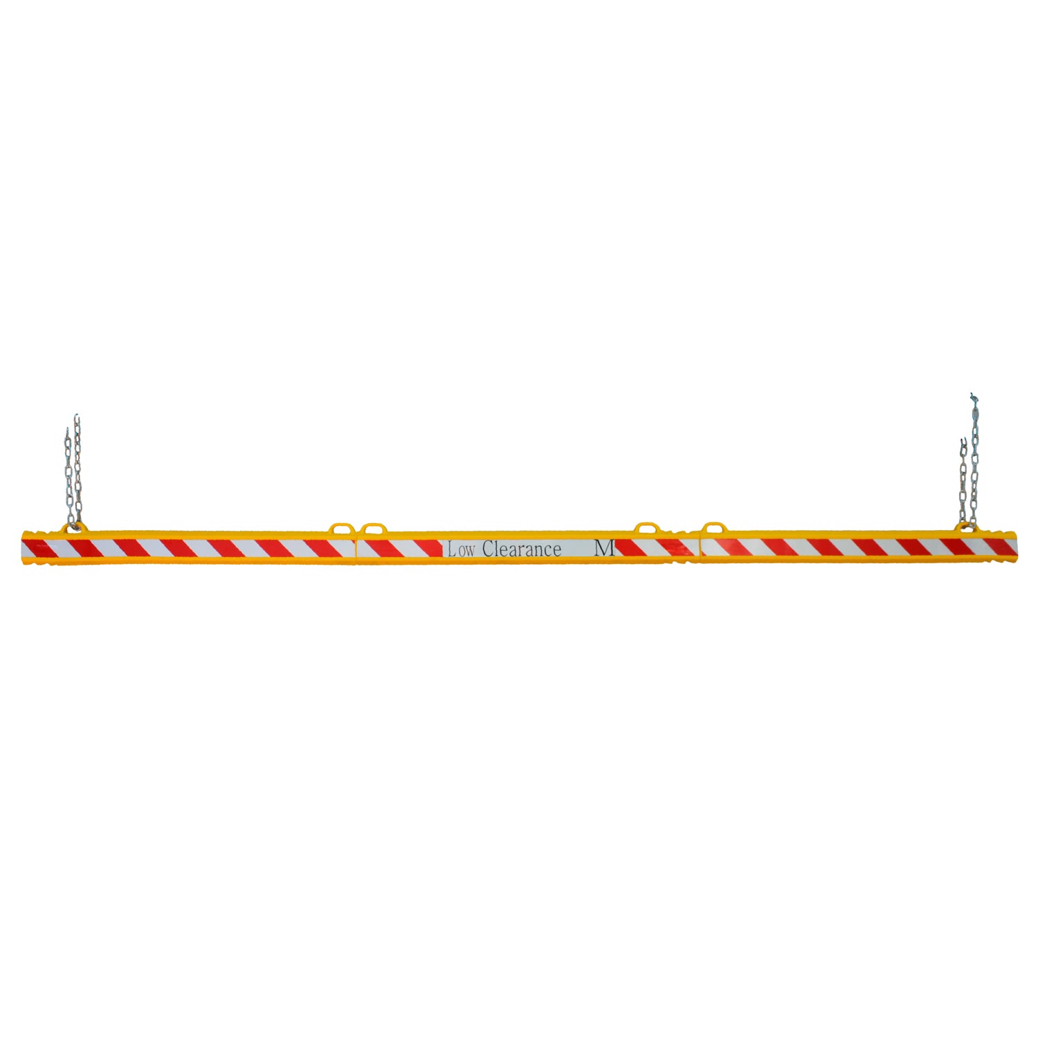 Barrera modular de 3 metros dividida en secciones de 1 metro. Incluye dos cadenas de 1 metro con ganchos de seguridad en ambos extremos para una fácil instalación. No incluye cintas reflectantes.