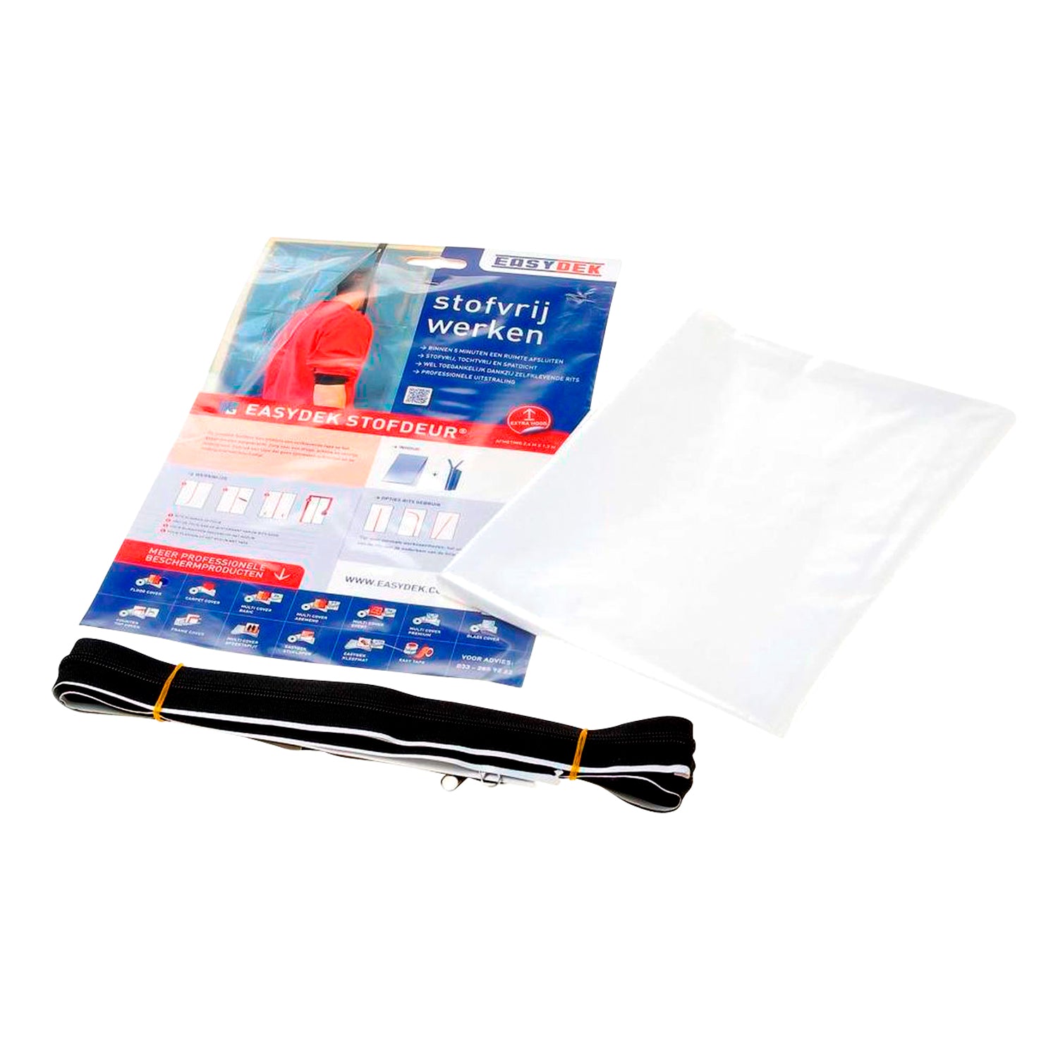 Protector súper resistente y transparente para sellar temporalmente la abertura de una puerta, con un cierre autoadhesivo para pegarlo en cualquier posición del protector de polvo.