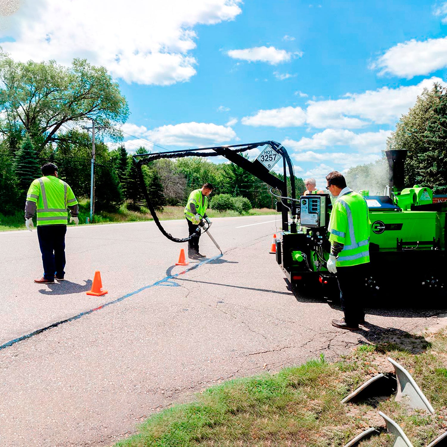 La reputación del MAGMA por su operación simple, segura y sostenible sigue viva con el MAGMA Serie M, que marca un nuevo capítulo para Cimline con el distintivo de pintura verde de seguridad. Ir verde/ ecológico significa más que un cambio de color de pintura ya que el MAGMA Serie M se distingue por emisiones más bajas, menor consumo de combustible y operación más silenciosa para un mejor ambiente de trabajo. Las características más populares del MAGMA Serie M el diseño de bajo perl, alta producción y facilidad de operación siguen haciendo de Cimline el líder en sellado de grietas.