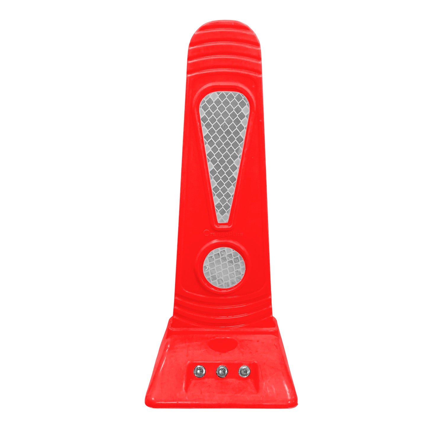 Tachón de señalización fabricado en poliuretano macizo con base de ABS, diseñado para soportar múltiples impactos sin deformarse de forma permanente. Su estructura flexible le permite recuperar su forma tras ser pisado por vehículos. Incorpora dos láminas reflectantes tipo panal en ambas caras, lo que proporciona alta visibilidad en condiciones de baja luminosidad.